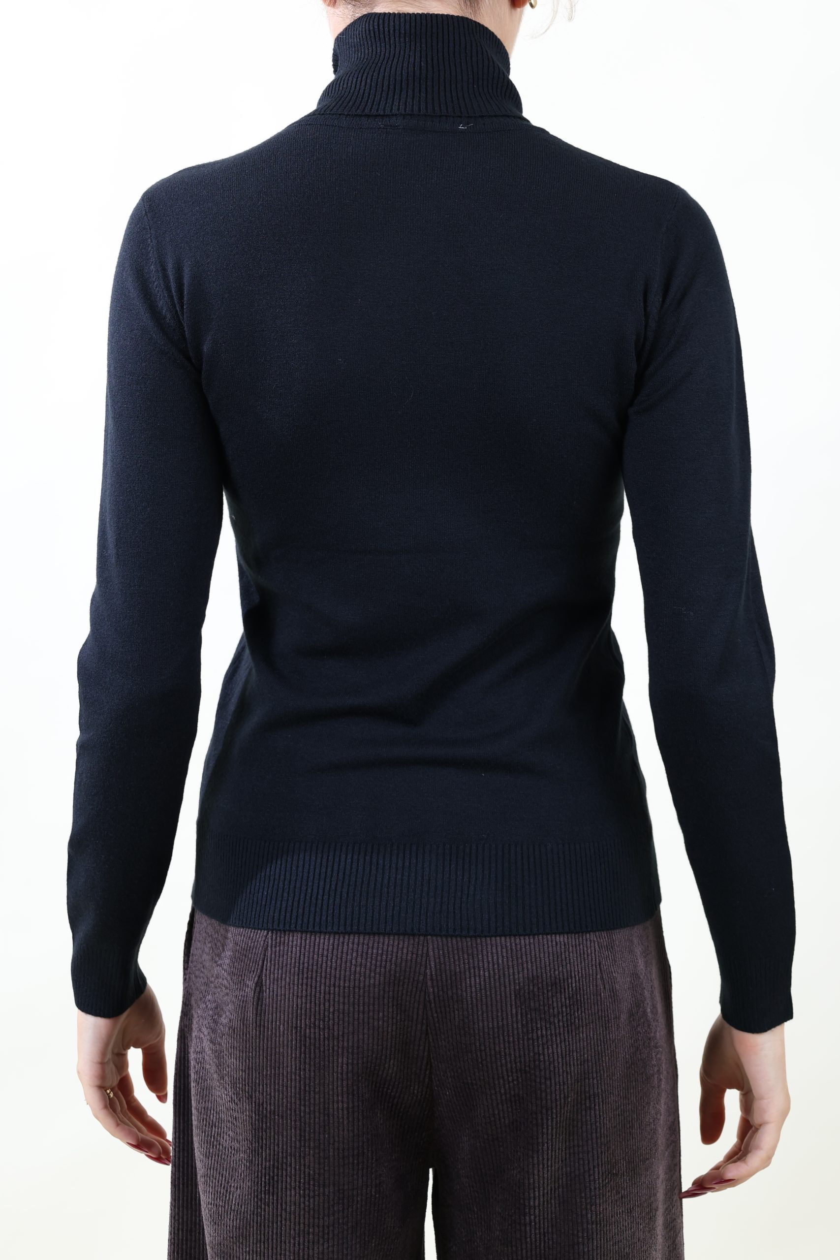 Maglia a dolcevita di viscosa. Capo basic e passepartout dalla vestibilità slim e molto elasticizzato. Taglia unica, veste dalla 40 alla 46.