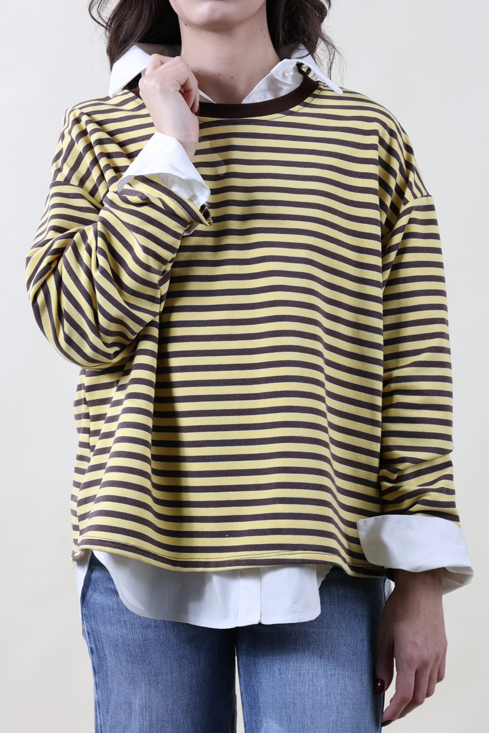 Felpina leggera con riga sottile. Fit ampio, taglia unica, veste dalla 40 alla 48.
