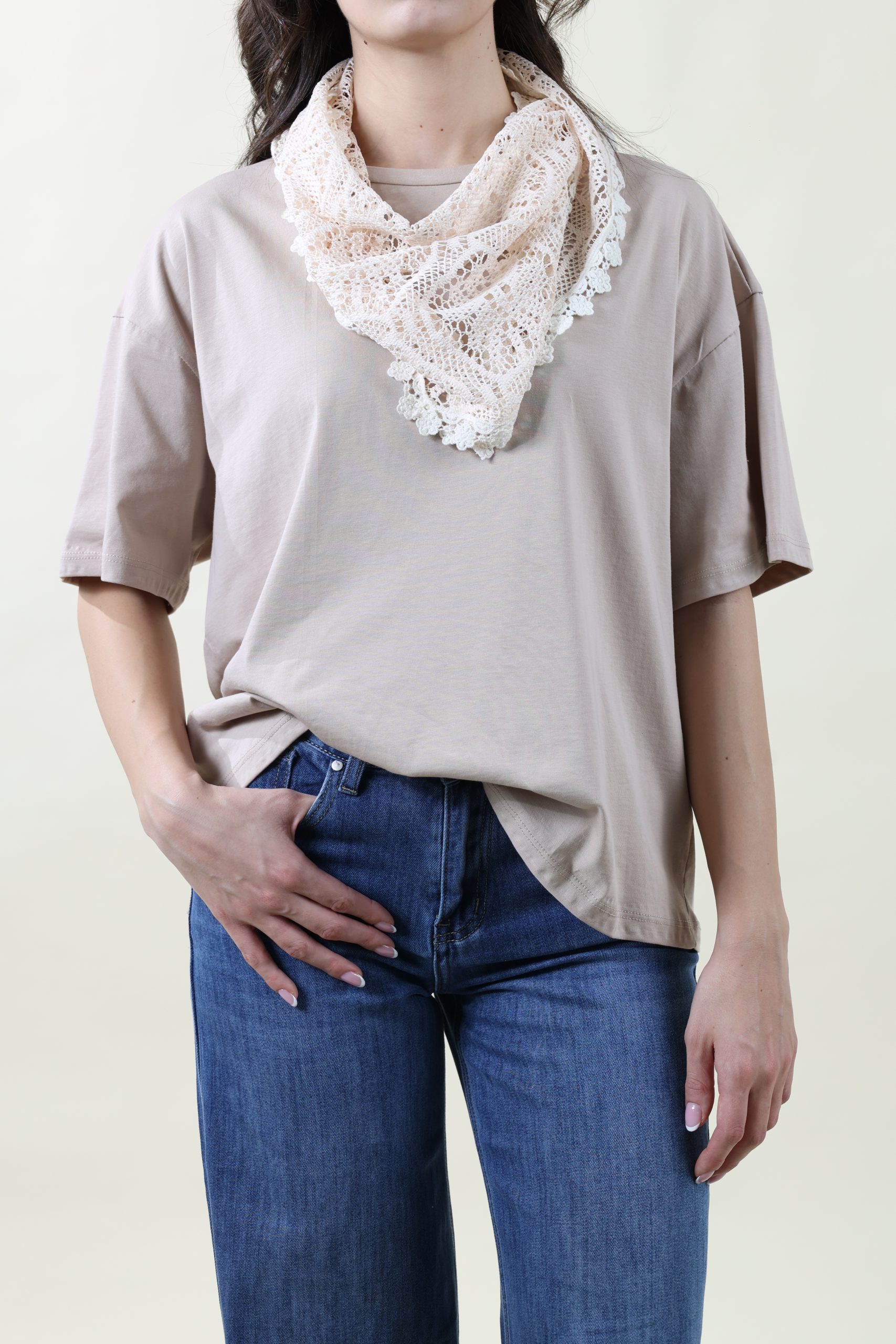 Triangolo in pizzo di cotone, accessorio cool per la stagione, da abbinare a t-shirt e denim.