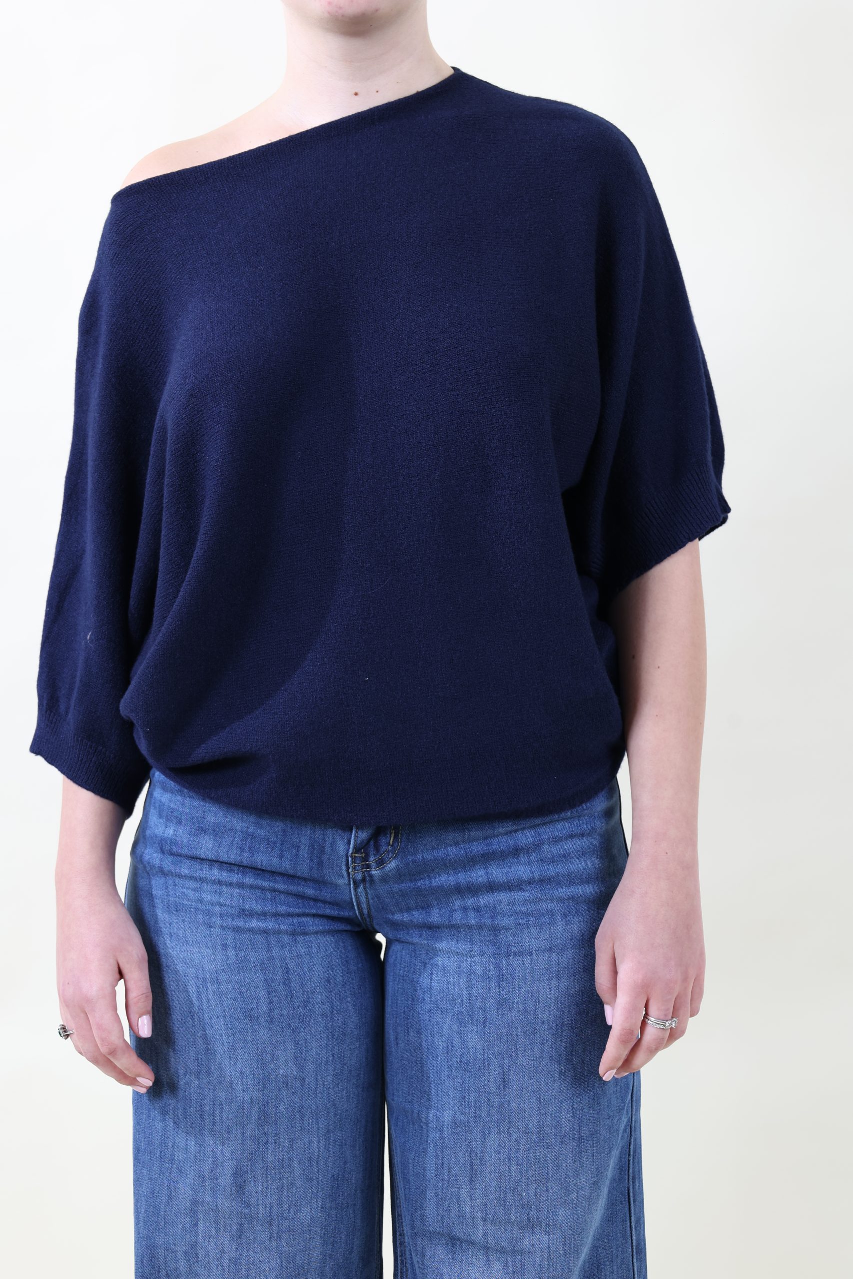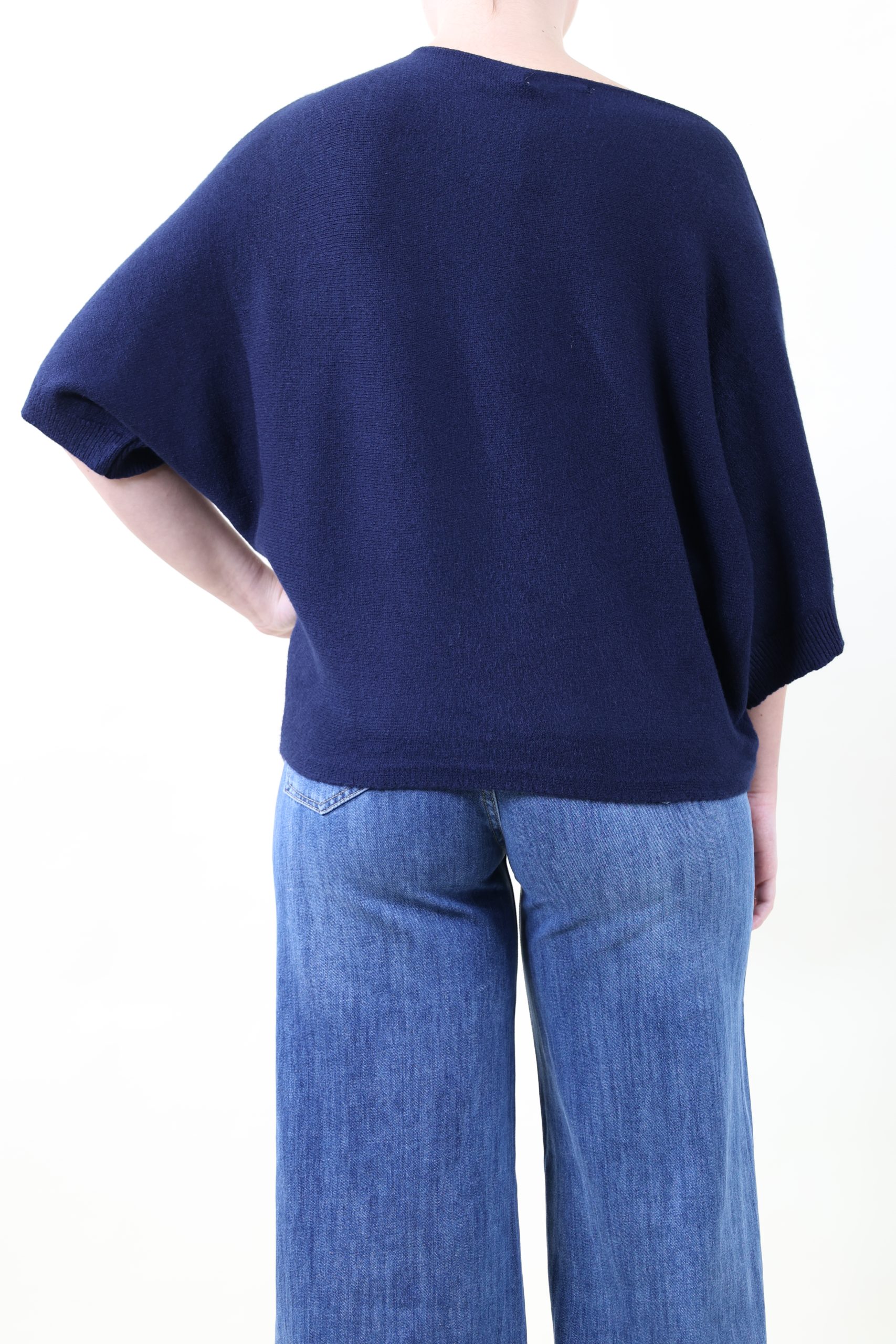 Maglia in morbida viscosa con linea a kimono e manica a 3/4. Taglia unica, veste dalla 40 alla 48.