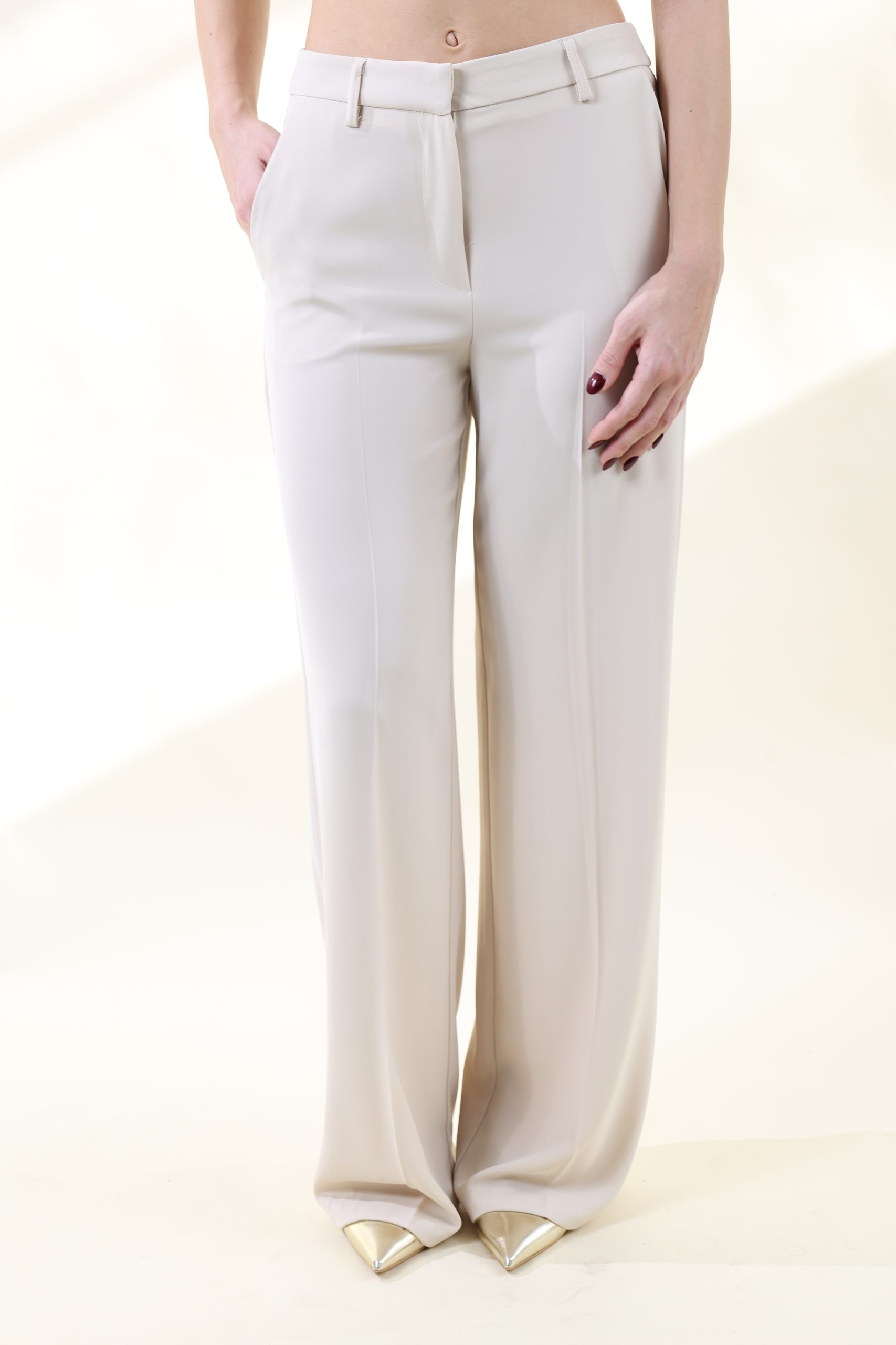 Pantalone in tessuto cady crep, costruito per vestire perfettamente. Tasche laterali, fit regolare, taglie dalla XS alla L (40-46).