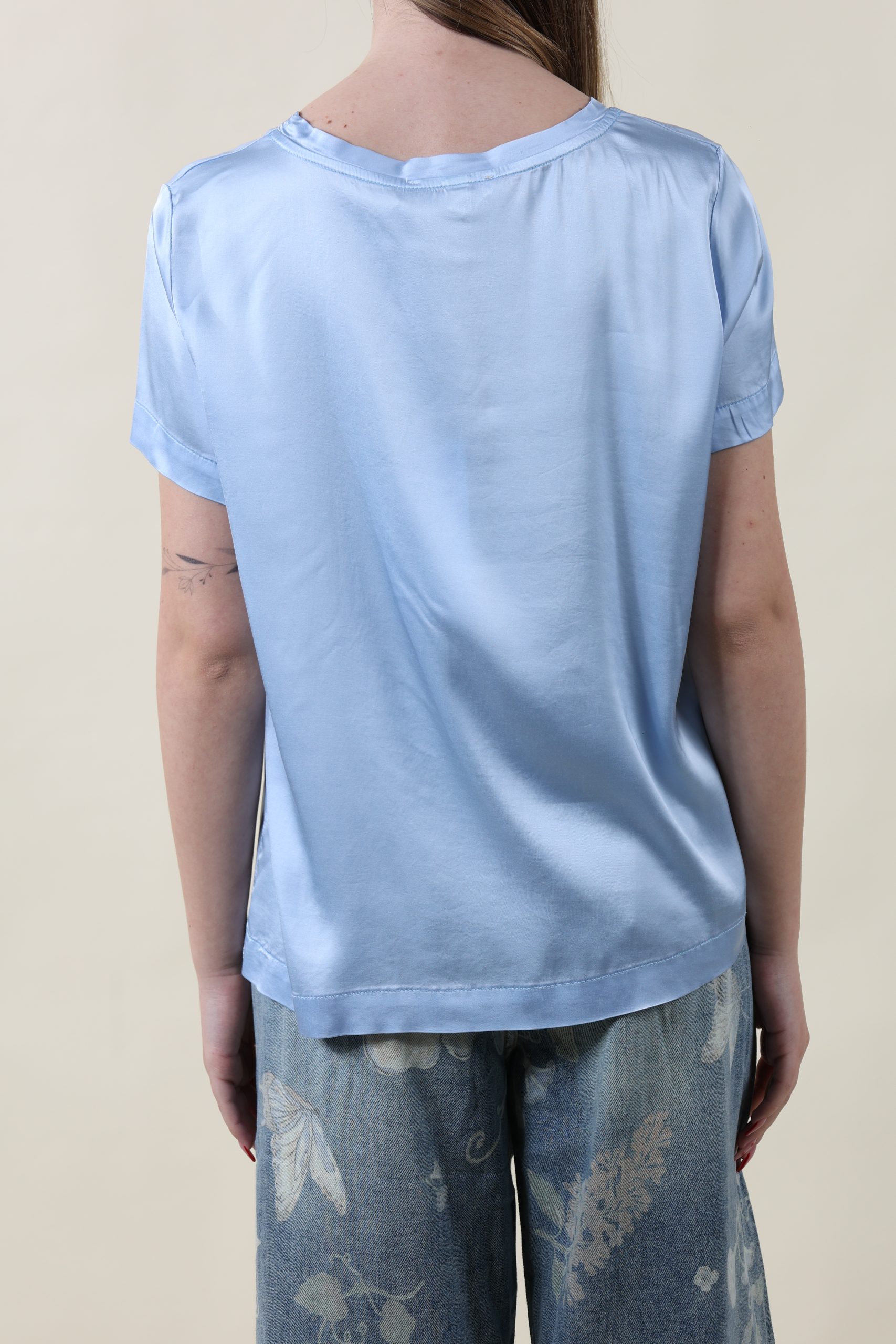 T-shirt in satin di viscosa elasticizzata, perfetto passepartout da usare tutto l’anno. Taglia unica, fit morbido, veste dalla 40 alla 46.